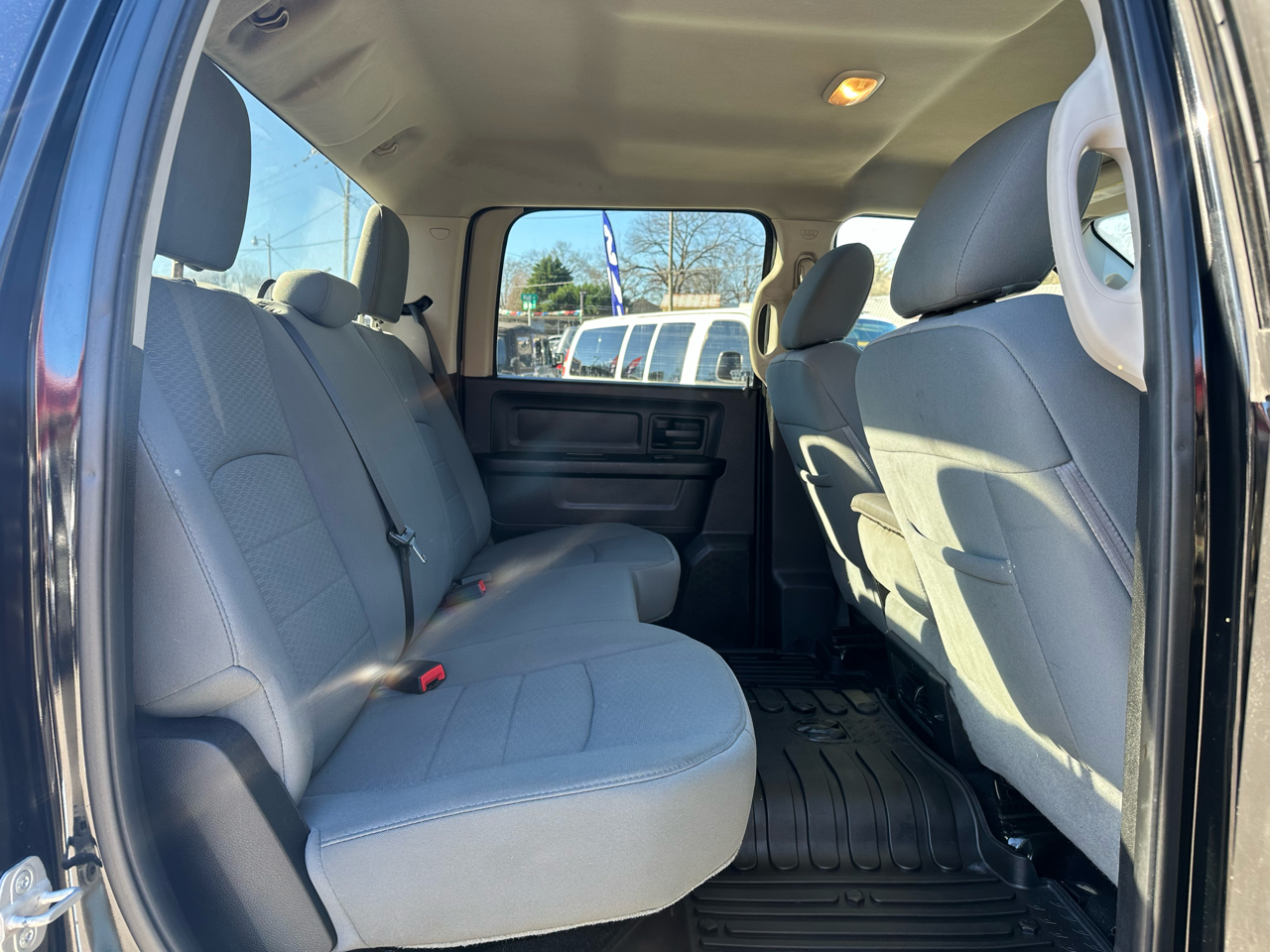 But it's not just brawn - this RAM 1500 also offers comfort and convenience with features like air conditioning, power windows, and a spacious interior with plenty of storage options. Automatic headlamps light the way while the quad beam halogen headlights provide added visibility. The Cargo lamp is perfect for late-night loading or unloading sessions. And don't worry about the truck's history - a Carfax report is available to give you peace of mind.
